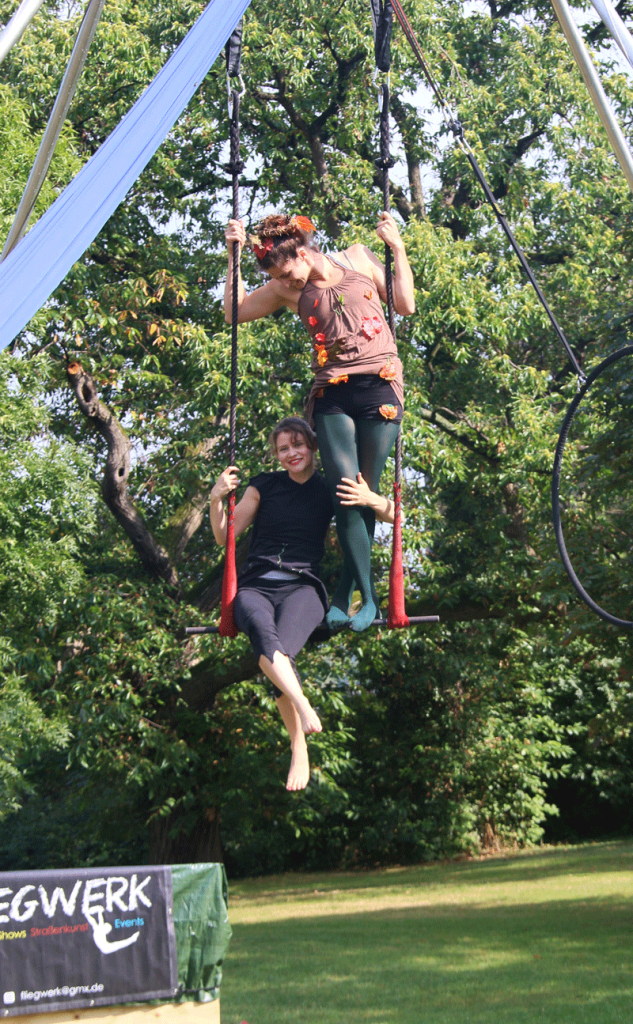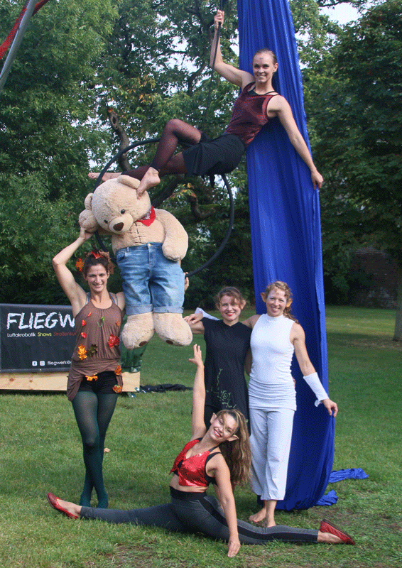 Die Luftakrobatinnen von Fliegwerk turnten als Elfen und Fabelwesen duch die Lüfte.