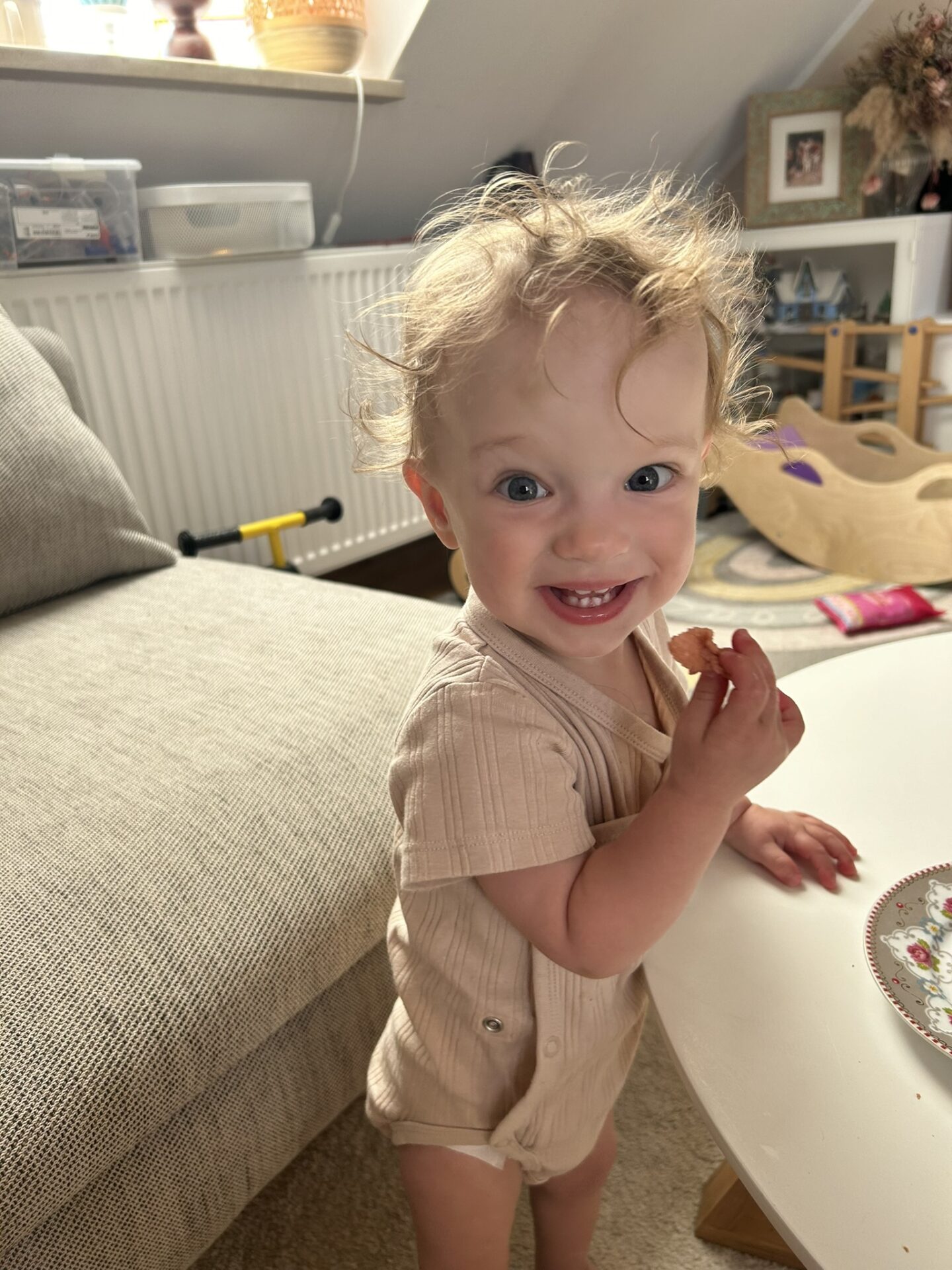 Große Kulleraugen unter einem blonden Lockenschopf gucken neugierig in die Kamera bei unserem Interview. Als das Thema Essen aufkommt, ruft Hedi begeistert: „Butter!“ Da müssen auch die Eltern lachen. „So richtig isst sie erst seit Februar dieses Jahres und Butter ist hoch im Kurs. Doch Essen ist nach wie vor eine heikle Angelegenheit bei uns.“