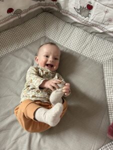 „Und da war unser kleiner Aprilscherz“, sagt Mia lächelnd, „zehn Wochen zu früh. Von Anfang an hat uns der Arzt gesagt, dass sie sehr bewegungsfreudig mit einem unfassbar starken Willen ist. Und das hat sich bis heute gehalten!“