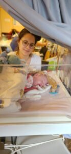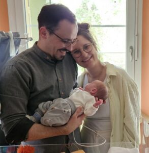 Mia und Patrick sitzen an Hedis Bettchen auf der Neo-Intensivstation in Erlangen. Sie warten auf das „Wolfsrudel“. „So haben wir die Mitarbeitenden der Kardiologie genannt. Sie kamen ein bis zweimal die Woche: Kinderkardiologen und Kinderherzchirurgen, Pflegekräften, Neonatologen, Psychologen und Studierenden. Sie waren mindestens zu siebt im Zimmer, manchmal sogar mit 14 Leuten“, lacht Mia. Doch als sie sich an die erste Zeit nach der Geburt zurückerinnert, muss sie die Tränen herunterschlucken. „Erlangen hat ganz viel heile gemacht. Die Pflegekräfte, alle auf der Neo-Intensiv – sie haben uns und Hedi so toll behandelt. Dort war das alles normal und deswegen konnten wir auch so zuversichtlich sein.“