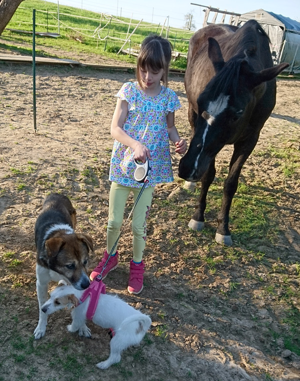 Diese nervenaufreibende Zeit ist mittlerweile elf Jahre her. Nina ist ein richtiger Wirbelwind und hält ihre Mutter und ihre große Schwester Jana auf Trab. Wie viele kleine Mädchen liebt sie Tiere über alles. Mittlerweile hat sie seit anderthalb Jahren eine Reitbeteiligung für das schwarzen Araberpferd Amon. Ihre besten Hundefreunde Micky und Toffee sind oft mit dabei im Stall.