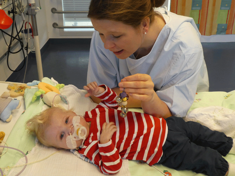 Unsere Musiktherapeutinnen an den Kinderkliniken Köln, Bonn und Göttingen bereichern mit ihren Stimmen und Instrumenten den schweren Klinikalltag der herzranken Kinder. Die musikalische Ansprache beruhigt und stabilisiert das Befinden der Kinder – sie blühen sichtlich auf.